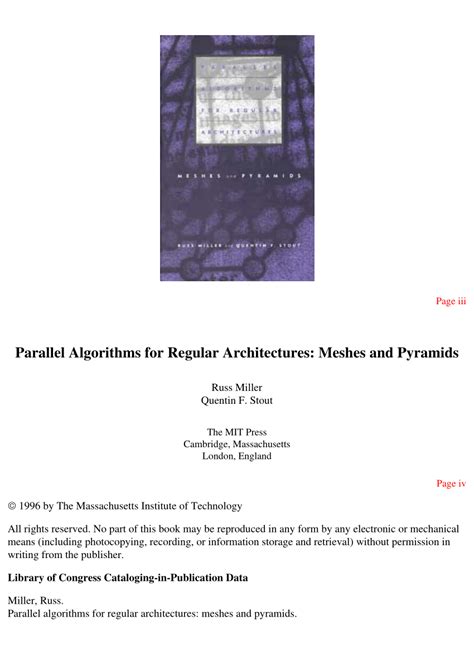 Read Online Parallel Algorithms for Regular Architectures Meshes and Pyramids MIT Press PDF online is a convenient and frugal way to read Parallel Algorithms for Regular Architectures Meshes and Pyramids MIT Press you love right from the comfort of your own home. Yes, there sites where you can get PDF "for free" but the ones listed below are clean from viruses and completely legal to use.